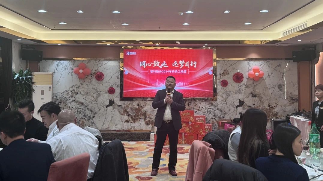 同心致遠(yuǎn),逐夢前行,智科股份全體成員齊聚年終晚宴,共同回顧過去一年的奮斗歷程,分享收獲與喜悅。隨著李總的精彩致辭,晚宴正式開啟。李總在致辭中對全體員工一年來的辛勤付出表示衷心感謝,對公司在過去一年取得的成績給予高度肯定,并對新的一年充滿期待與憧憬,鼓勵大家繼續(xù)攜手奮進,創(chuàng)造更加輝煌的明天。
