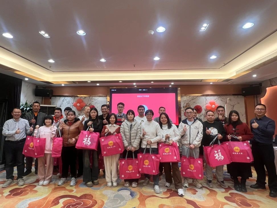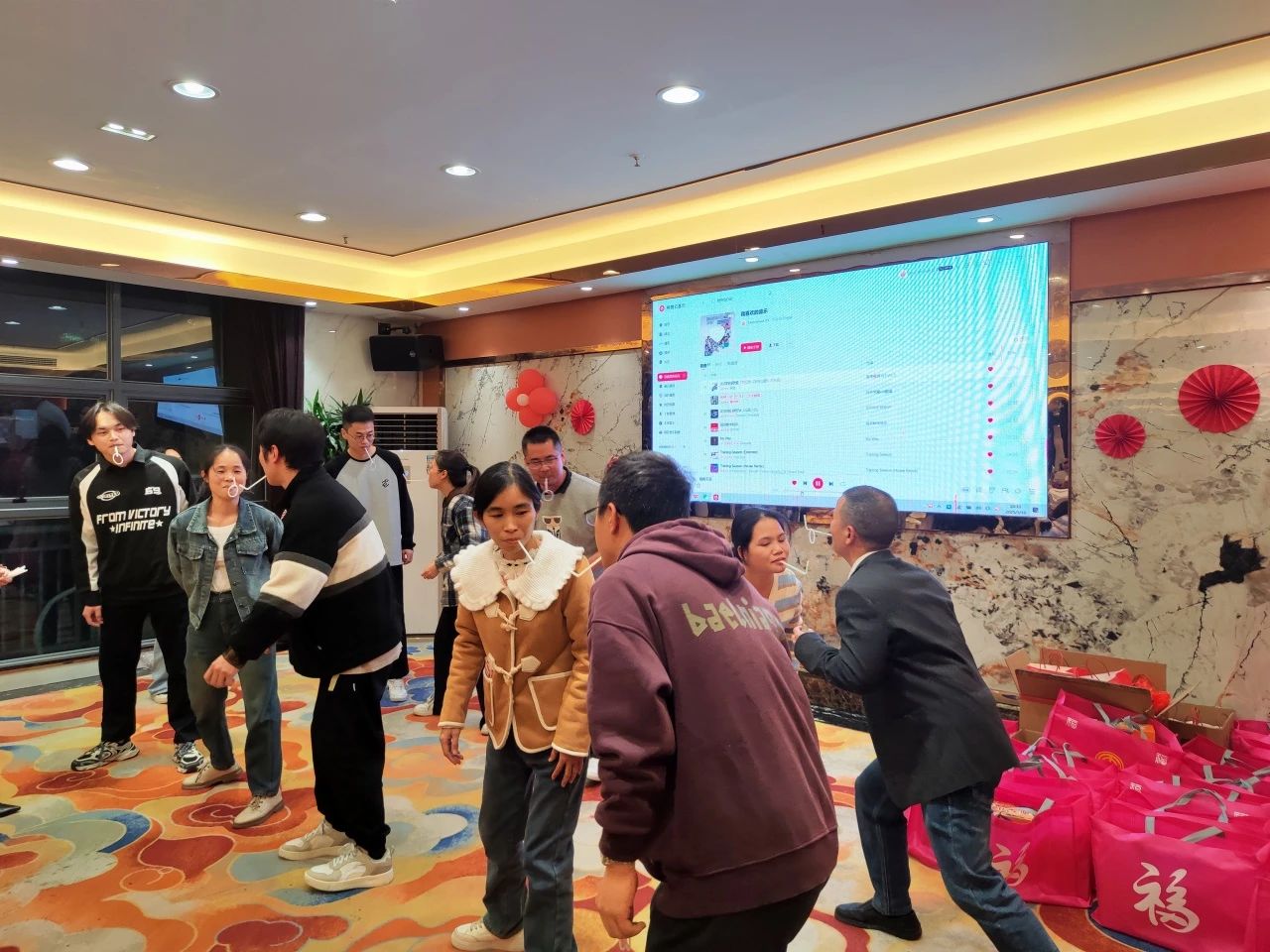 除了歡樂的游戲,晚宴還設(shè)置了激動人心的抽獎環(huán)節(jié)。隨著抽獎小程序的緩緩轉(zhuǎn)動,一份份精美的獎品落入幸運兒手中,中獎?wù)叩南矏偱c激動,未中獎?wù)叩牧w慕與期待,交織在一起,為晚宴增添了更多的驚喜與歡樂。